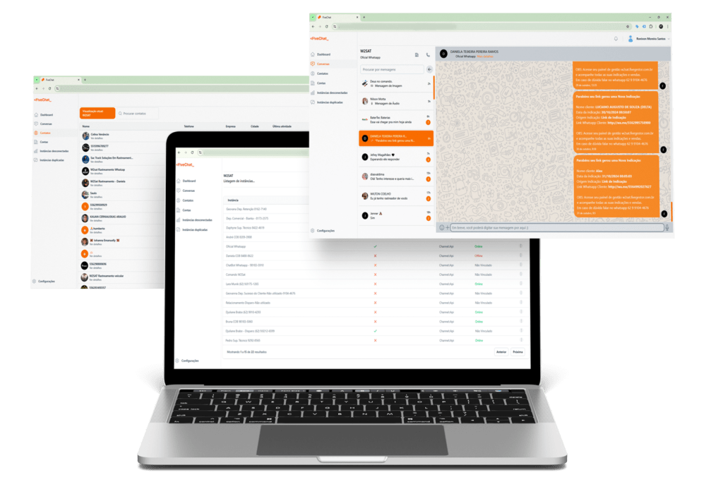 O FiveChat é uma plataforma que espelha e monitora as conversas do WhatsApp da sua empresa, permitindo que gestores acompanhem atendimentos em tempo real. Com ele, sua empresa garante qualidade, segurança e padronização no atendimento ao cliente tudo de forma simples, rápida e profissional.
